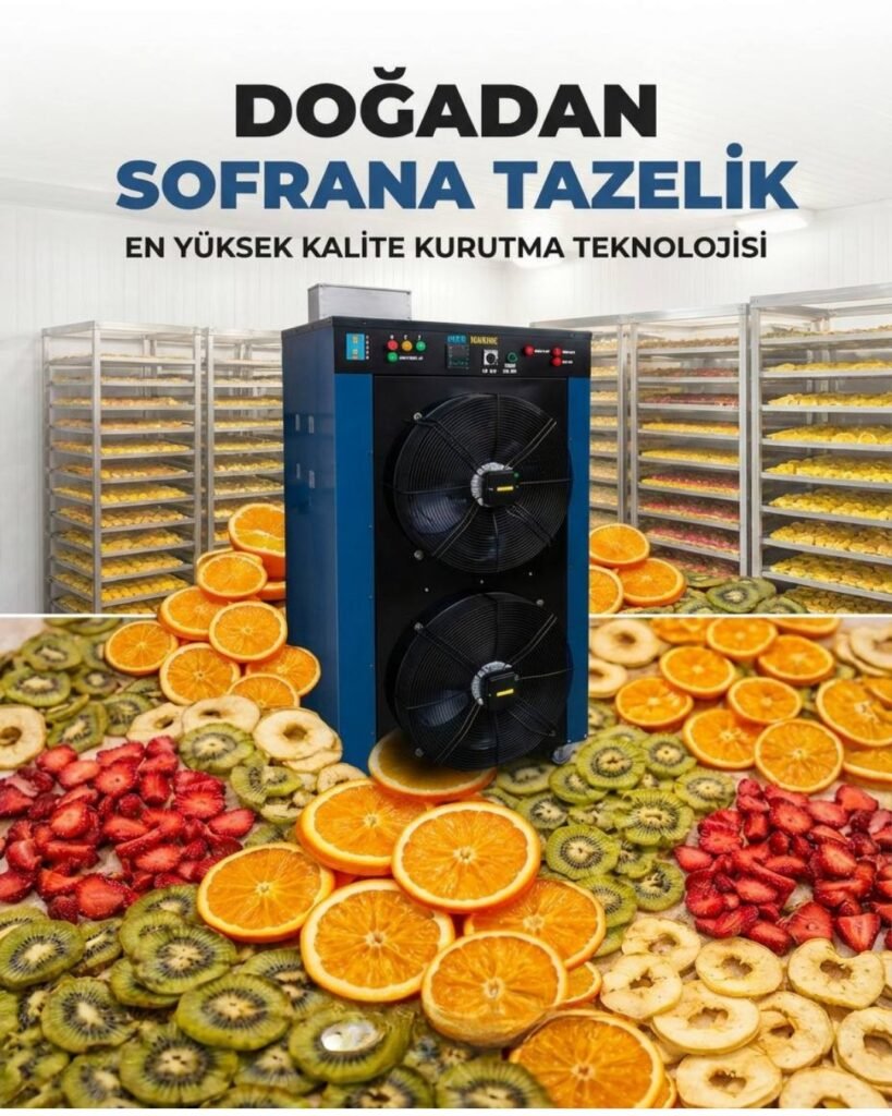Meyve kurutma makineleri, taze meyvelerin besin değerini ve doğal aromasını koruyarak uzun süre saklanmasını sağlayan modern ve verimli üretim sistemleridir. Gelişmiş hava sirkülasyonu ve kontrollü sıcaklık teknolojisi sayesinde elma, portakal, muz, çilek, kayısı ve daha birçok meyve hijyenik şartlarda kurutulabilir.